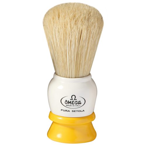Omega 10108 Pure Bristle Shaving Brush. The Omega professional shaving brush range was originally designed to be used by barbers. Nowadays they have become a popular shaving brush for wet shave lovers too.