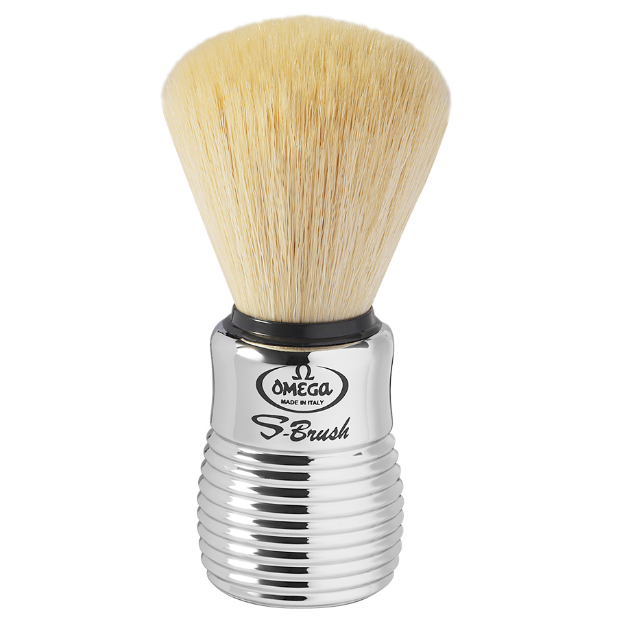 | Omega S-Brush synthetic fiber shaving brush. |
